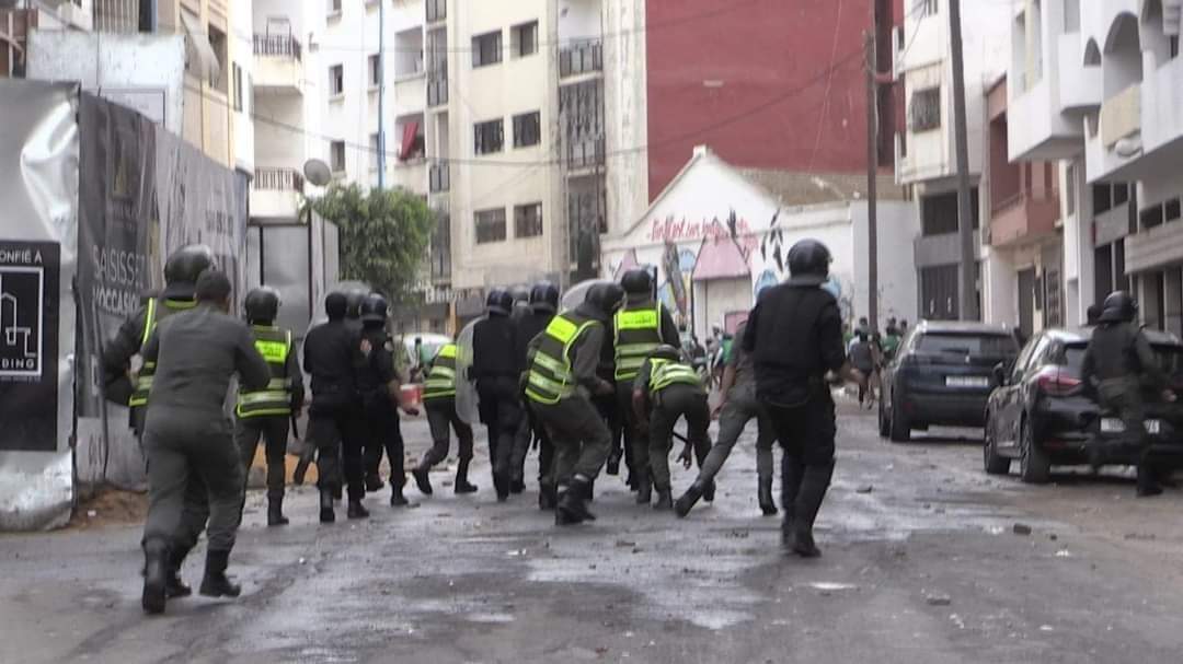 وقد عمد مرتكبو الشغب إلى رشق عناصر القوة العمومية بالحجارة مما تسبب في إصابة 12 شرطيا بجروح، وإلحاق خسائر مادية بعشر (10) مركبات من بينها سبع عربات تابعة للأمن الوطني.