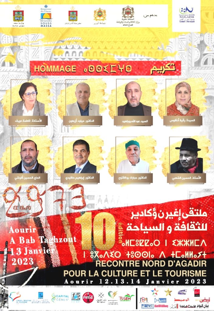 تنظم جمعية “إغير ن ؤكادير”، أيام 12- 13- 14 يناير 2023، ملتقى إغير ن ؤكادير للثقافة والسياحة في دورته العاشرة، وذلك بدعم من وزارة الشباب والثقافة والتواصل -قطاع الثقافة- ومجلس جهة سوس ماسة والجماعة الترابية لأورير.