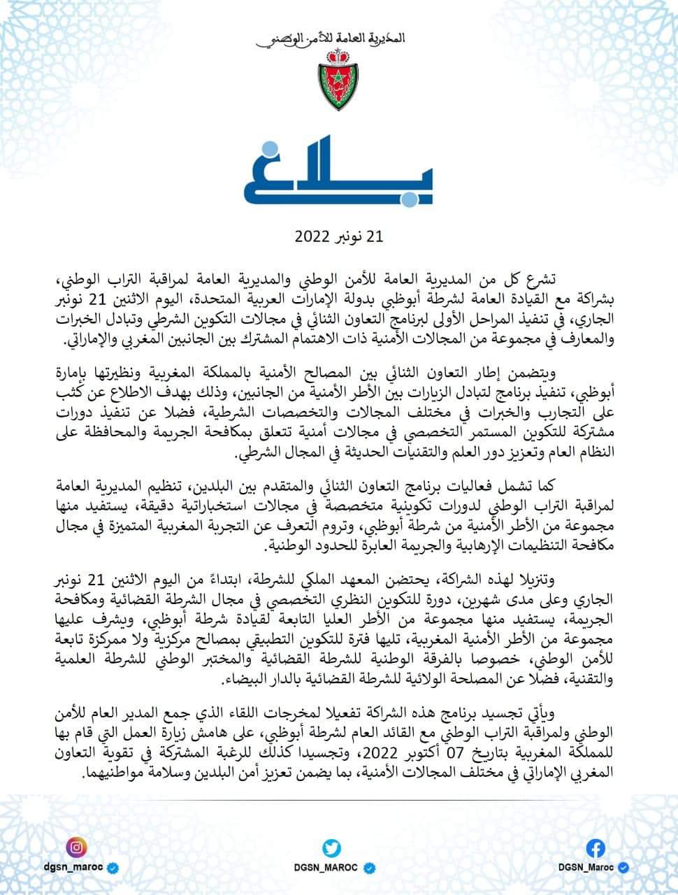 تعاون ثنائي في مجالات الشرطة وتبادل الخبرات الأمنية بين المملكة المغربية والإمارات