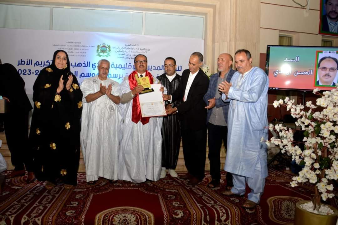 نظمت المديرية الإقليمية لوادي الذهب حفل تكريم بهيج  على شرفه و عدد من المديرين الدين حصلوا على ( التقاعد و الانتقالات)نظرا للأخلاق الحميدة التي يتحلى بها، والقدرات التدبيرية المتميزة التي يتوفر عليها السيد لحسن اوعدي المزداد بداوار إغالن بجماعة أربعاء الساحل إقليم تزنيت .