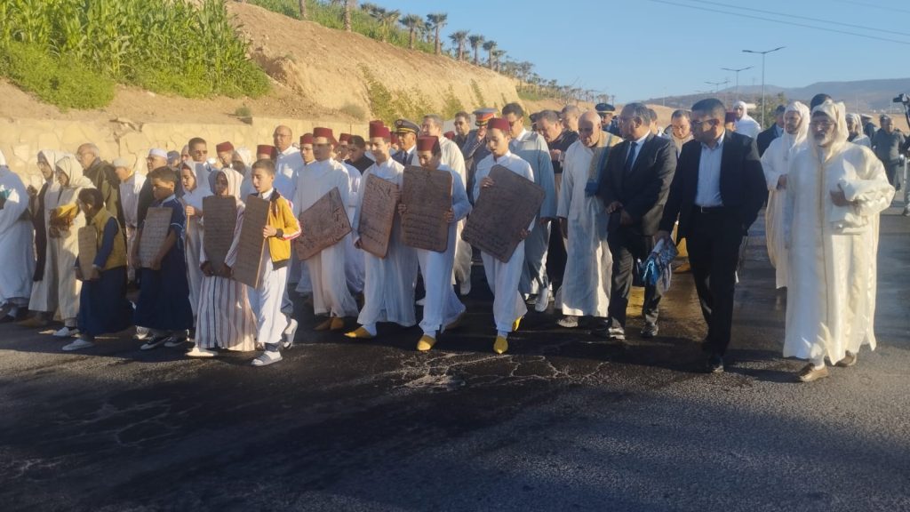 كما ردد السائرون في ذات الموكب أدعية الاستسقاء، في أجواء روحانية ودينية، حيث كانت بداية الموكب الرسمي من المربد الرئيسي لمحطة أكادير تليفريك مرورا بالطريق المحاذية لتلضي وصولا إلى مصلى تالبرجت القديمة حيث تم أداء جموع المصلين صلاة الاستسقاء متضرعين إلى الباري عز وجل بالدعاء والاستغفار، وأن يسقي عباده وبهيمته، وينشر رحمته، ويحيي بلده الميت.