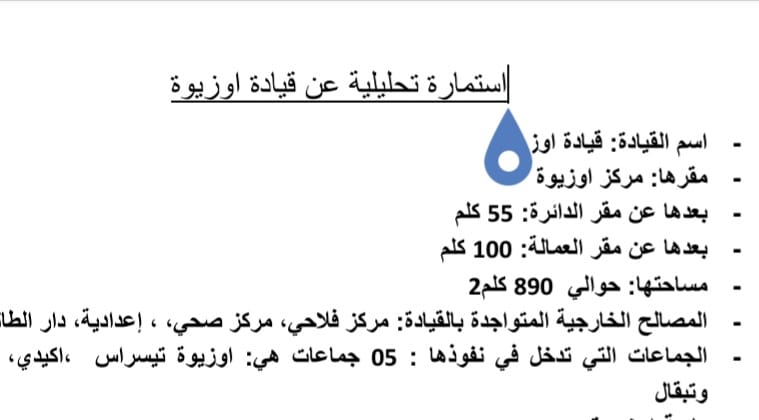و خلال هذه الزيارة التفقدية، تمت زيارة ساكنة بعض الدواوير التابعة للنفوذ الترابي لقيادة اوزيوة على مستوى الجماعات الترابية: ازيوة ، تيسراس، اكيدي، أهل تيفنوت و توبقال. حيث تمت معاينة فضاء خاص بإيواء المتضررين المحتملين من جراء موجة البرد التي تعرفها المنطقة كل سنة ، و كذا تفعيل الإجراءات و التدابير التي ستقوم بها مختلف المصالح الإدارية، تحت إشراف السلطات الإقليمية لتارودانت في شخص السيد الكاتب العام، للحد من الآثار المحتملة لموجة البرد، وذلك بجماعة ازيوة، و الجماعات الأخرى التابعة للاقليم.
