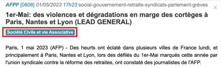 هذا الحديث يجد مبرراته فيما أقدمت عليه وكالة الأنباء الفرنسية، حينما أجازت لنفسها ترتيب احتفالات العمال الفرنسيين ضمن خانة المجتمع المدني والحياة الجمعوية، يقينا منها أن التصنيف المزعوم من شأنه أن يخفف وطأة التجاوزات المسجلة على مستوى احتفالات الشغيلة الفرنسية بعيد الشغل 2023 ثم تكتيك واضح لصرف الأنظار عن ما يعرفه واقع حقوق الإنسان بفرنسا منذ فترة ليست بالوجيزة بدأ بمشاهد الدخان المتناثر هنا وهناك وصولا إلى الضرب المبرح للمتظاهرين.